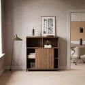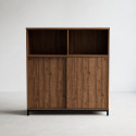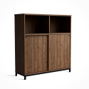 Crito-säilytyssarja koostuu vankoista ja kestävistä kaapeista, joissa on moderni muotoilu ja materiaalina helppohoitoinen laminaatti. Tässä leveämmässä toimistokaapissa on kolme hyllytasoa, joista yksi avohylly ja kaksi hyllyä liukuovien takana.