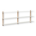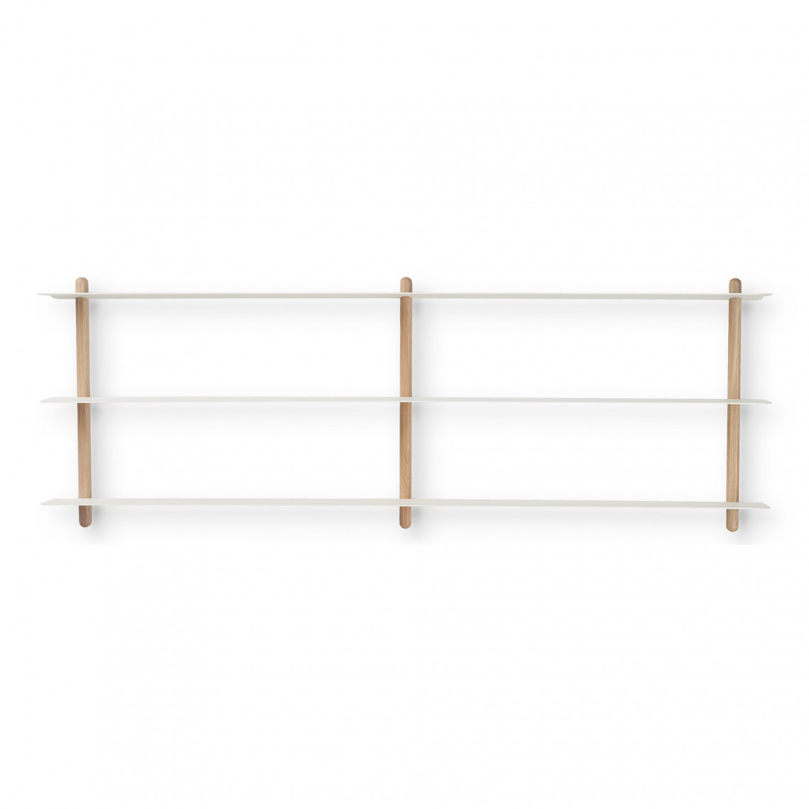 Nivo is een slank wandrek waarbij in het ontwerp niets aan het toeval is overgelaten. De legplanken rusten in precies uitgezaagde sleuven in de houten staanders, waardoor het rek elegante en volledig naadloze verbindingen heeft zonder zichtbare schroeven.